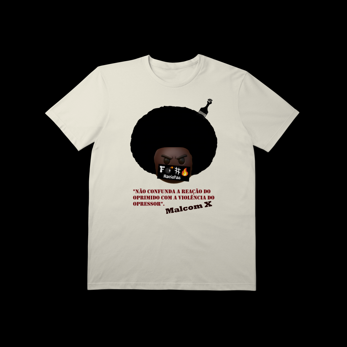 T-shirt Vozes Pretas eMojubá traz uma estampa exclusiva que conecta identidade negra, ancestralidade e estética contemporânea. No centro da composição, o Black Power Emoji surge em destaque acompanhado por uma frase marcante de um herói negro, sintetizando resistência, consciência e orgulho em uma única expressão visual de forte impacto simbólico.